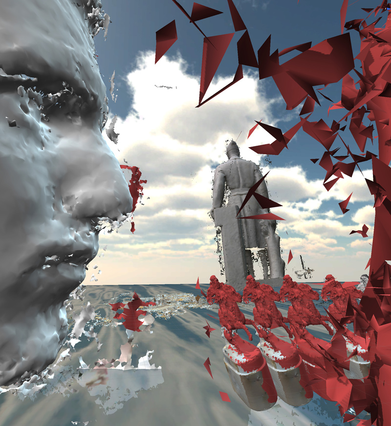 Επαναφέροντας στη συλλογική μνήμη φορτισμένα δημόσια έργα τέχνης, ανακατασκευάζει την κυρίαρχη αφήγηση χρησιμοποιώντας την αισθητική του αντί μνημείου.