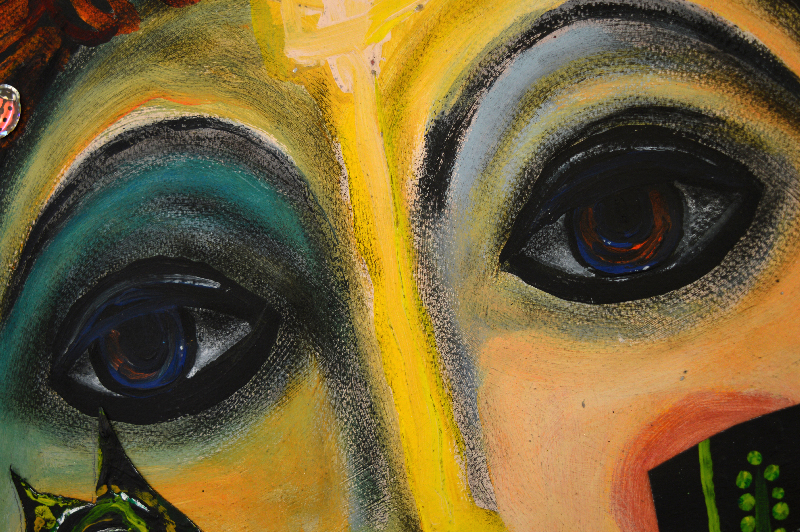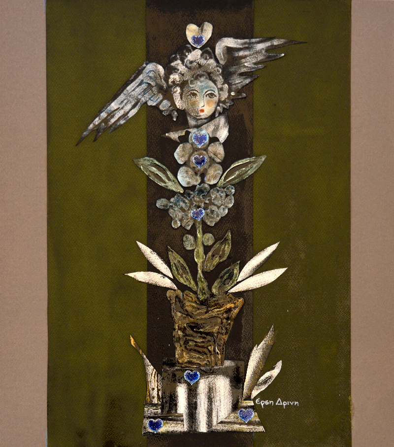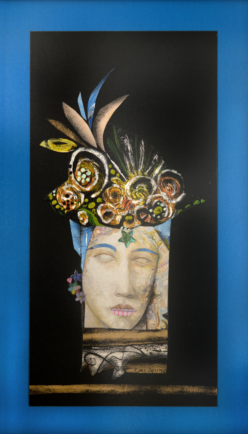 Με τον «Αθέατο Κόσμο» της συνομιλεί εδώ και 2 χρόνια περίπου, κλεισμένη στο εργαστήριο-σπίτι της, ανάμεσα σε δικά της σχέδια και έργα στους τοίχους. Όρθια πάνω στα κραγιόνια της, στα λάδια, στις ακουαρέλες, στα πλαστιικά χρώματα, σε μάσκες, δαντέλλες, κούκλες, στεφάνια, φύλλα, υφάσματα, φτιάχνει τα δικά της ονειρικά ζωγραφικά κολλάζ και το δικό της μυστικό και αναπάντεχο κόσμο που τώρα είναι έτοιμος να έρθει στο φως του πραγματικού.