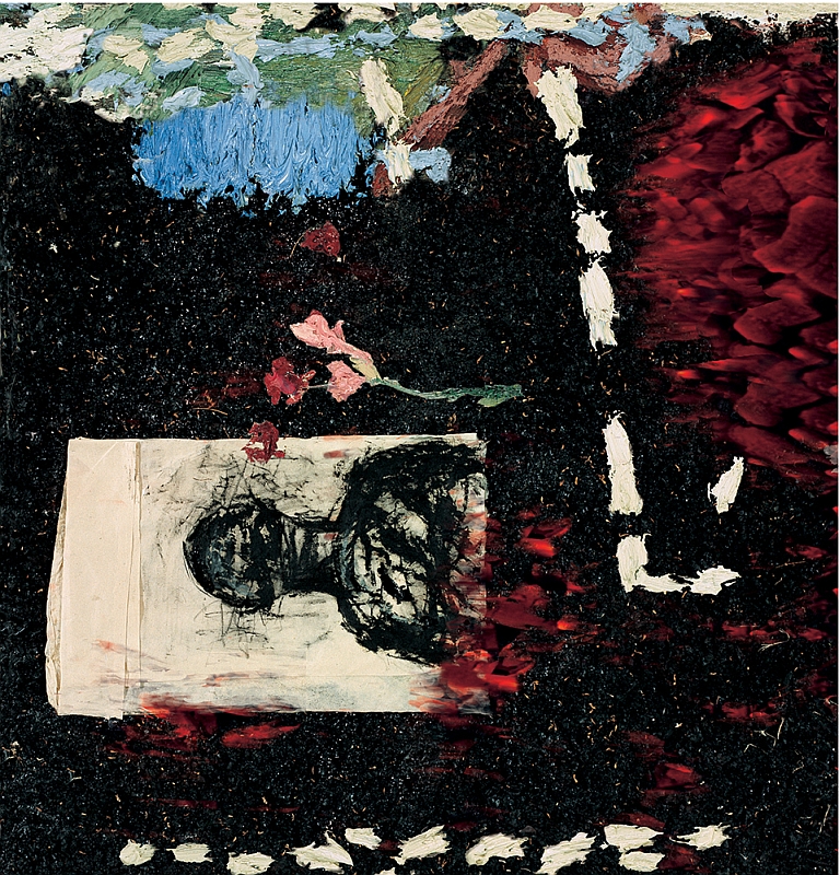 Δομεί το χώρο της σαν μια πολύχρωμη και θραυσματική και ονειρική «τοιχογραφία», με παχιές, νευρώδεις, συνειρμικές και αντιθετικές πινελιές.