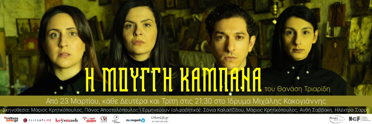 Μετά από δύο επιτυχημένες χρονιές στην Αθήνα και τις sold out παραστάσεις στην Πάτρα και τη Θεσσαλονίκη, όπου παρουσιάστηκε στο 59ο Φεστιβάλ Δημητρίων, η παράσταση «Η Μουγγή Καμπάνα» της Ομάδας Rodez, βασισμένη στη συγκλονιστική και τρομακτικά επίκαιρη νουβέλα του Θανάση Τριαρίδη, επιστρέφει για περιορισμένο αριθμό παραστάσεων στο Ίδρυμα Μιχάλης Κακογιάννης από 23 Μαρτίου και κάθε Δευτέρα και Τρίτη στις 21:30.