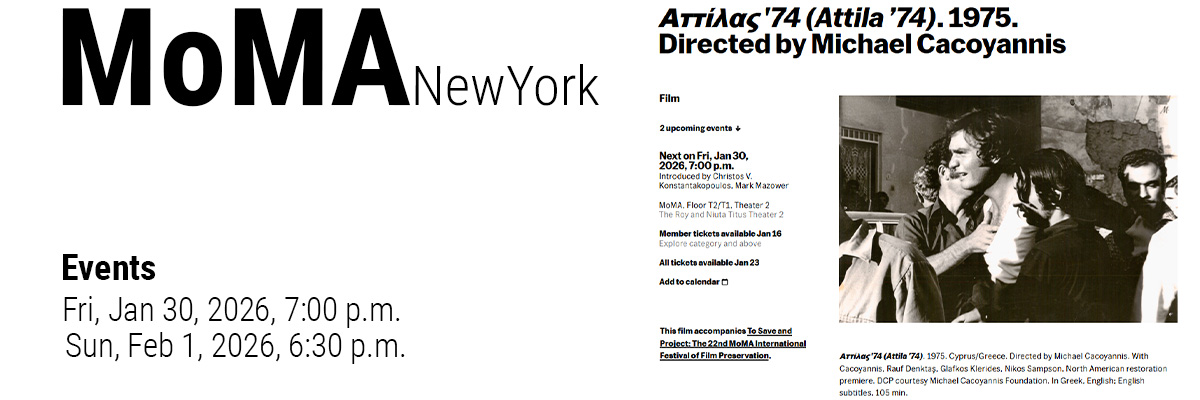 Two screenings of Attila ’74, the iconic documentary by Michael Cacoyannis, were held to a full house at MoMA in New York, fifty years after its original release.