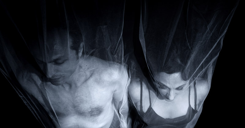 The performance focuses exclusively in the main characters of the story who surrendered to the ambitious vision of power, they decide to kill the king in order to take his place. Through obsessive wavering and violent battles, Macbeth and Lady take the fatal act which will elevate them to the highest achievement and at the same time banish them to the desert that lurking Furies are preying. Like twin Evil incarnations they fall onto a desperate seek of meaning, they follow the blooded thread that leads the satisfaction of the deepest desire to the abortion of completition itself, to madness, to loneliness and eventually to death.