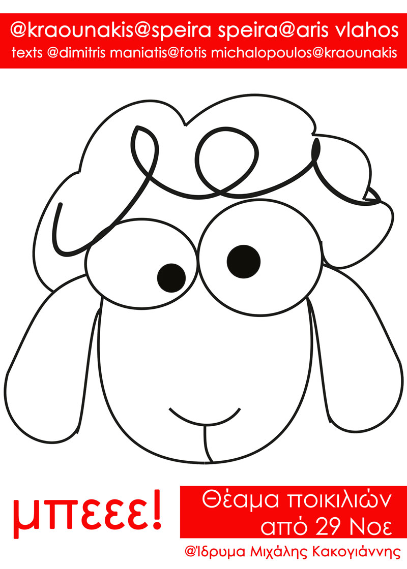 Please inform the people of our country, that we will again, this year, be residing at the Michael Cacoyannis Foundation, every Thursday at 20.00, Fridays and Saturdays at 21:00 and we shall shout “BAAAH” at anybody who tries to slaughter us.