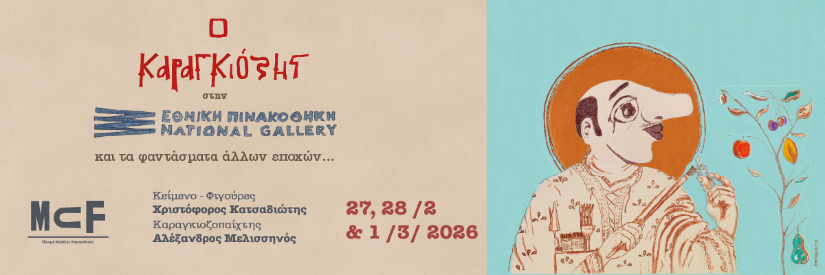 The work “Karagiozis at the National Gallery and the Ghosts of Other Eras” by Christophoros Katsadiotis is a narrative performance of educational character, created with respect for audiences of all ages and free of derisive elements. Through the vitality and familiar popular humor of Karagiozis, it opens a meaningful dialogue on art, censorship, tolerance, the cultivation of the mind, freedom of expression, the importance of education, and the power of culture.